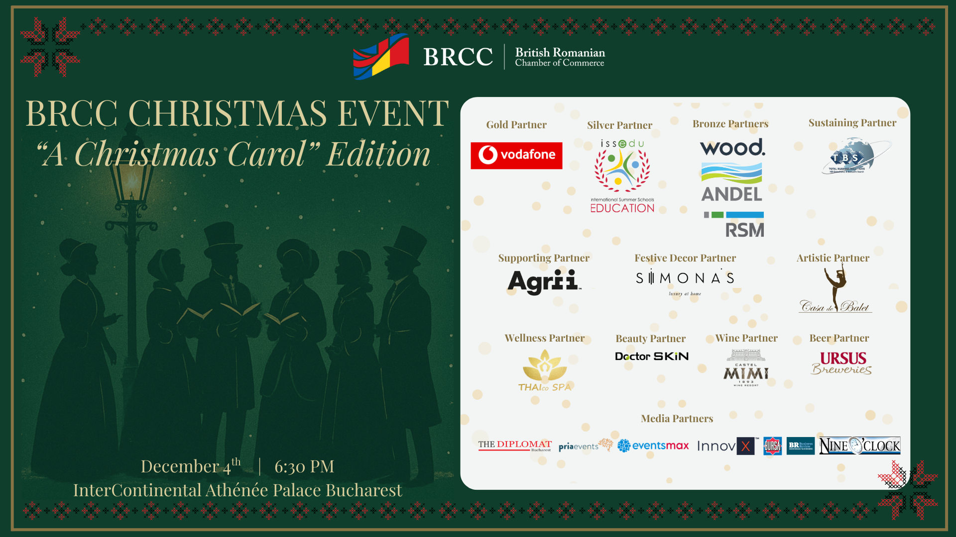 The British Romanian Chamber of Commerce warmly invites you to an enchanting evening inspired by one of the most beloved holiday stories of all time. The event will take place on 4th of December at InterContinental Athénée Palace, Bucharest starting at 6:30 pm.