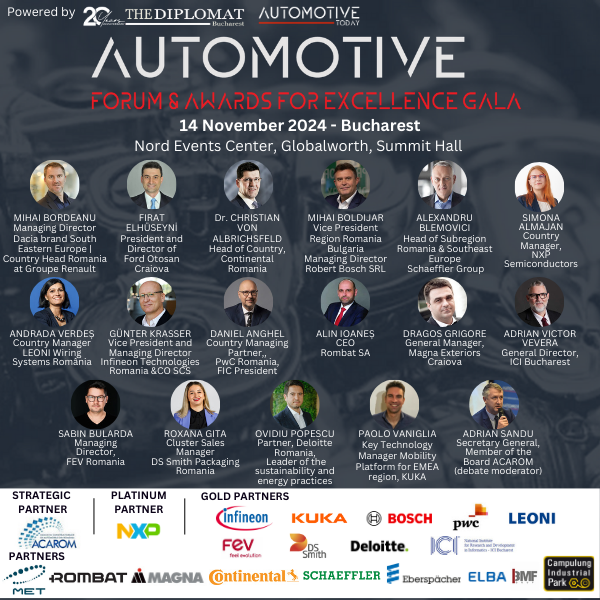 The Diplomat-Bucharest & Automotive Today organize the yearly event Automotive Forum & Awards For Excellence on November 14, at Nord Events Center, Globalworth, Summit Hall.