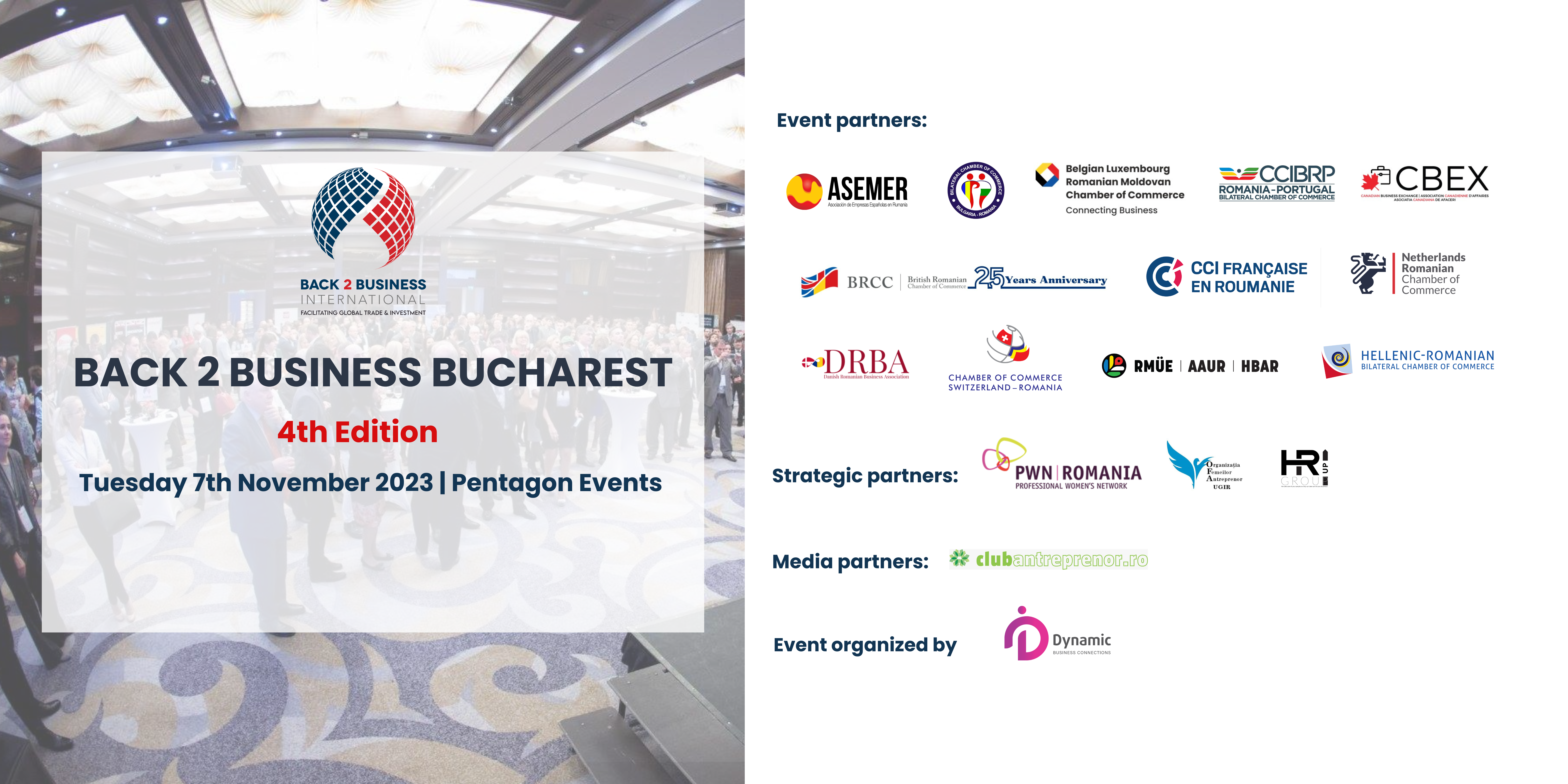 We are pleased to announce that the BRCC will be a strategic partner for this year’s highly-anticipated BACK 2 BUSINESS networking event. The event will take place on November 7th at Pentagon Events, Bucharest.