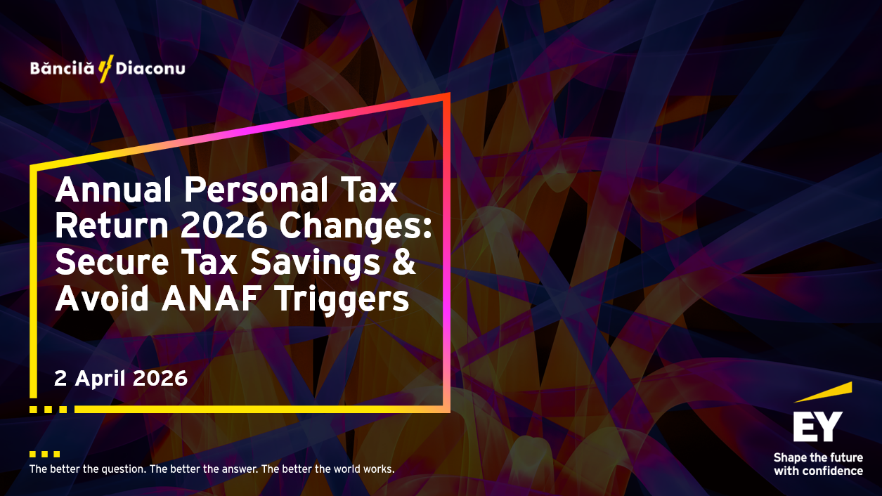 We are delighted to host an in‑person Business Breakfast at EY Romania for you (as a member of our Chamber) focusing on the most relevant 2026 updates regarding Romania’s Annual Personal Tax Return (Declarația Unică – “DU”) Secure Tax Savings & Avoid ANAF Triggers.