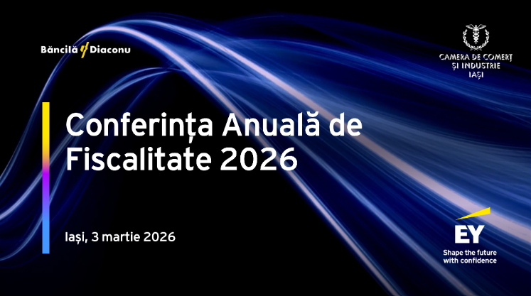 EY România are plăcerea de a vă invita la Conferința Anuală de Fiscalitate organizată în parteneriat cu Camera de Comerț și Industrie Iași, care va avea loc marți, 3 martie 2026, începând cu ora 09:30, la Congress Hall Palace, Palace Mall, Iași. Acest eveniment reprezintă o oportunitate de a reflecta asupra modificărilor fiscale, precum și a oportunităților care sunt la dispoziția antreprenorilor români (structuri de holding).
