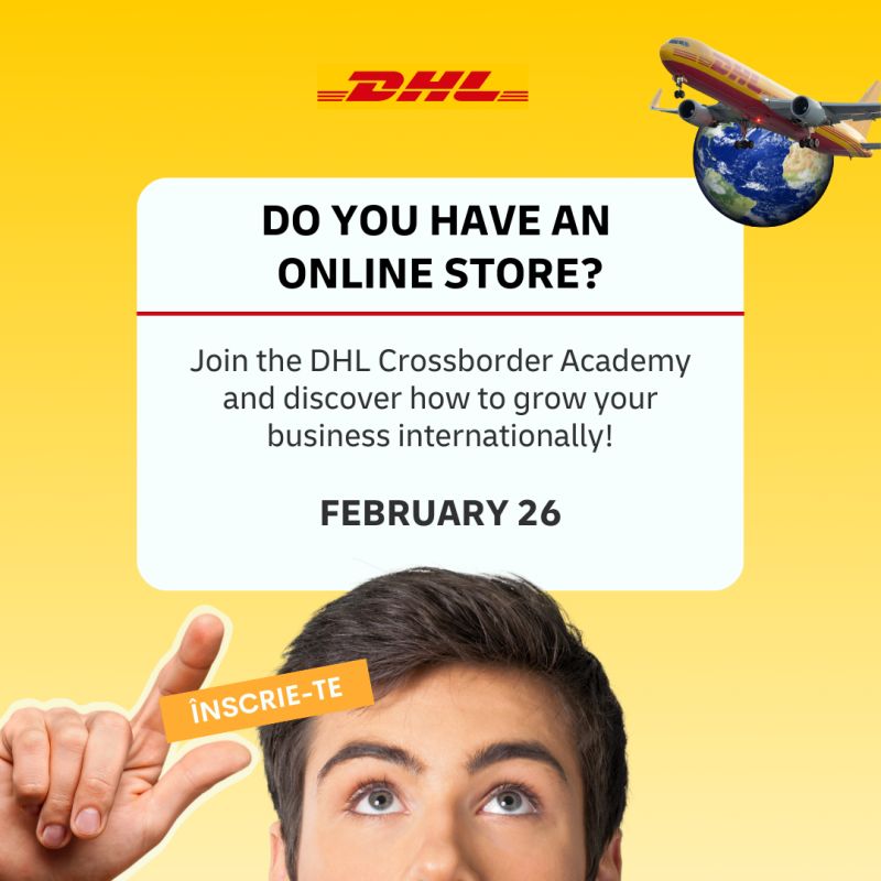 DHL Crossborder Academy revine cu strategii esențiale pentru a-ți extinde afacerea la nivel internațional! Vrei să afli cum să îți crești vânzările, să atragi mai mulți clienți și să îți îmbunătățești performanța? Hai la evenimentul nostru!