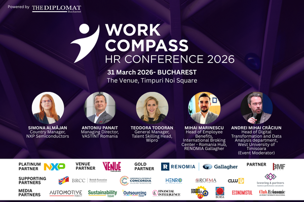 THE DIPLOMAT-BUCHAREST organizes the 10th Edition of HR CONFERENCE | WORK COMPASS on March 31st at The Venue, Timpuri Noi Square, inviting the key leading voices, top managers and decision makers in the local and international business landscape to join and share their insights on the most discussed and approached topics in the HR and the interconnected workspace.