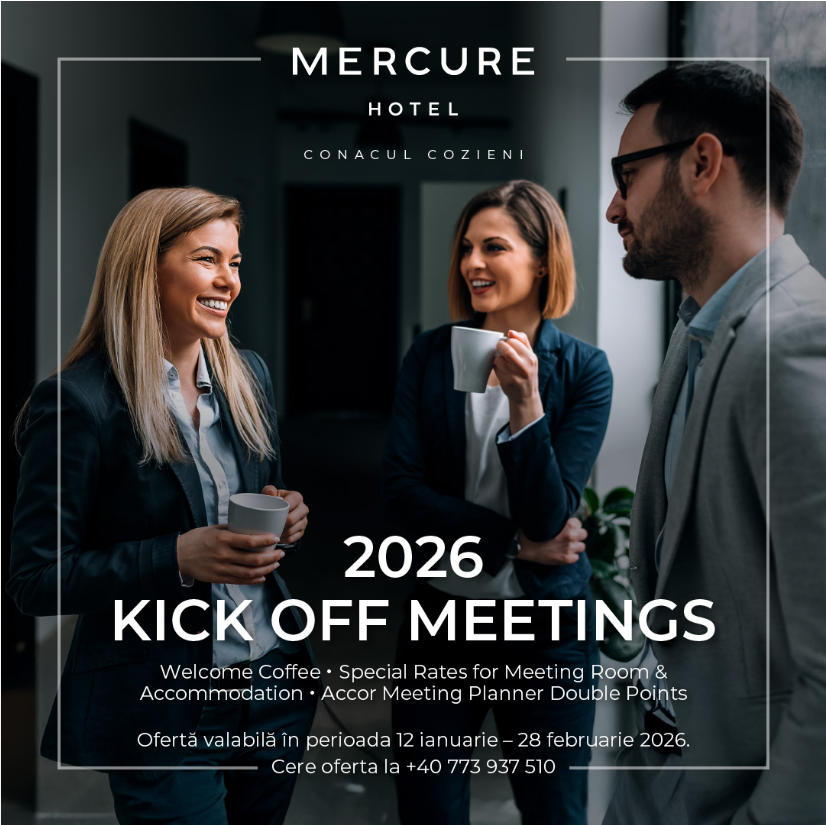 Start 2026 with clear direction and focus, together with the team, at Mercure Conacul Cozieni. Kick Off Meetings provide the ideal setting for budgets, strategies, and action plans, away from the city’s busy life, with an advantageous early-year budget. More information here.